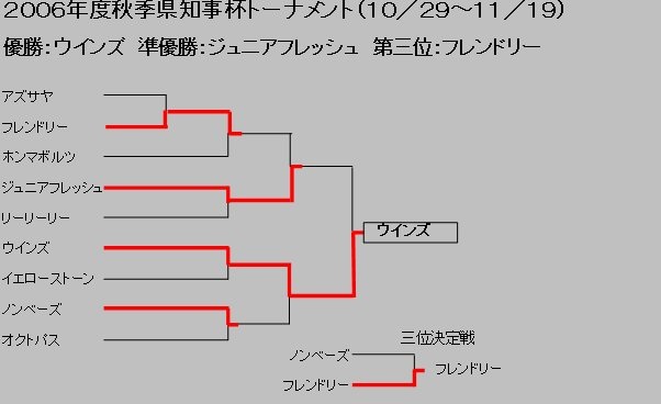 | 1 | ジュニアフレッシュ | 16 | 15 | 0 | 1 | 1.000 | 31 | - | ○○ | △□ | ○○ | ○○ | ○□ | ○○ | ○○ | ○○ |