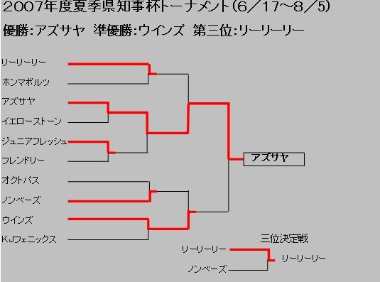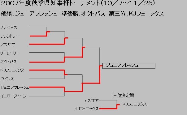 | 1 | ジュニアフレッシュ | 17 | 15 | 2 | 0 | 0.882 | 30 | - | ○○ | ○● | ●○ | ○○ | ○○ | ○○ | ○○ | ○○ | ○ |