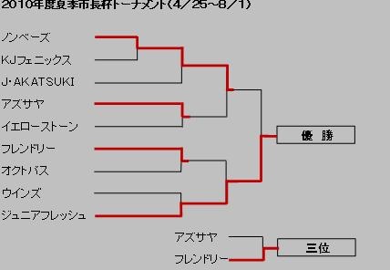 | 1 | ジュニアフレッシュ | 16 | 14 | 2 | 0 | 0.875 | 28 | - | ○○ | ○○ | ●○ | ●○ | ○○ | ○○ | ○○ | ○○ |