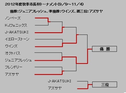 | 1 | ジュニアフレッシュ | 16 | 14 | 2 | 0 | 0.875 | 28 | - | ●○ | □○ | ○○ | ○○ | ●○ | ○○ | ○□ | ○□ |
