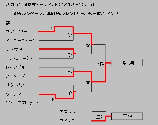 | 1 | ジュニアフレッシュ | 16 | 13 | 2 | 1 | 0.867 | 27 | - | ○● | △○ | ●○ | □○ | ○○ | ○○ | ○□ | ○○ |